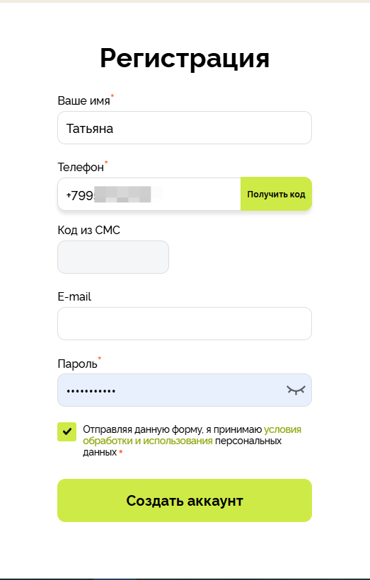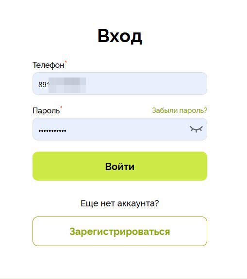 Вход на сайт: после регистрации войдите на сайт с помощью номера телефона и пароля, заполнив соответствующие поля.
