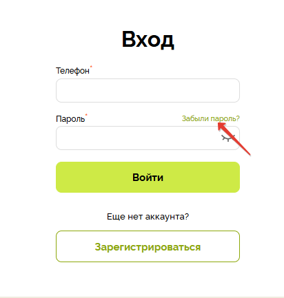 - Запросите сброс текущего, кликнув по ссылке «Забыли пароль?» в форме «Входа» на сайт.